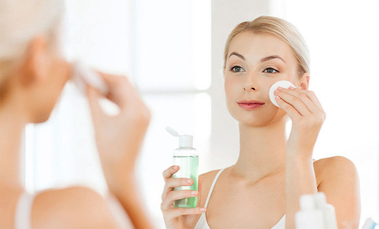Sau khi làm sạch da bằng sữa rửa mặt, hãy thoa toner. Toner giúp loại bỏ các dấu vết nhỏ của dầu, bụi bẩn và lớp trang điểm mà bạn có thể đã bỏ qua khi rửa mặt. Sữa rửa mặt làm sạch da sẽ khiến da mất độ cân bằng pH. Tonner giúp da cân bằng lại độ ẩm giúp cấp ẩm nhanh và sâu vào trong.