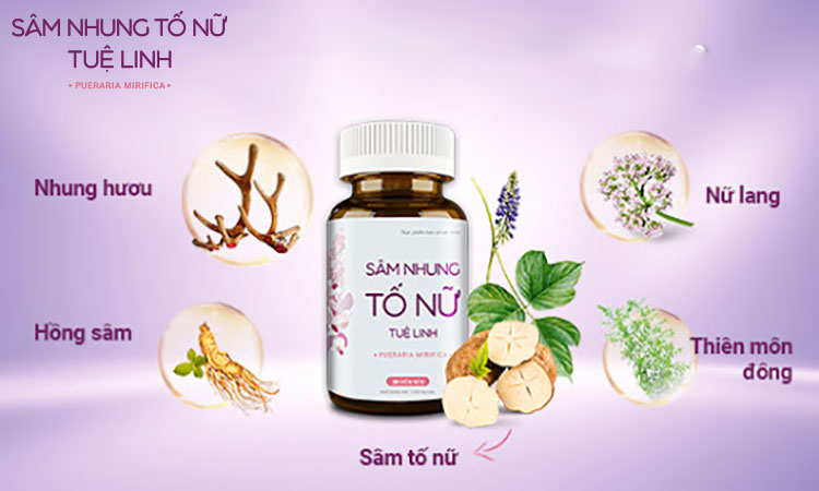 Thực phẩm bảo vệ sức khỏe Sâm Nhung Tố Nữ Tuệ Linh là thành quả nghiên cứu của Viện Hàn Lâm Khoa học Việt Nam đã nghiên cứu và phát hiện ra hoạt chất Miroestrol có trong Sâm tố nữ – vua của các loại thực vật trong việc bổ sung estrogen tự nhiên cho cơ thể phụ nữ, nó có tác động mạnh gấp 10.000 lần mầm đậu nành lại cực kỳ an toàn và hiệu quả.