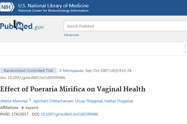 Kết luận: Pueraria mirifica đã được chứng minh là có khả năng estrogen hóa ở mô âm đạo, giảm các triệu chứng khô âm đạo và rối loạn chức năng, cải thiện các dấu hiệu teo âm đạo, và khôi phục biểu mô âm đạo trong các phụ nữ sau mãn kinh khỏe mạnh.